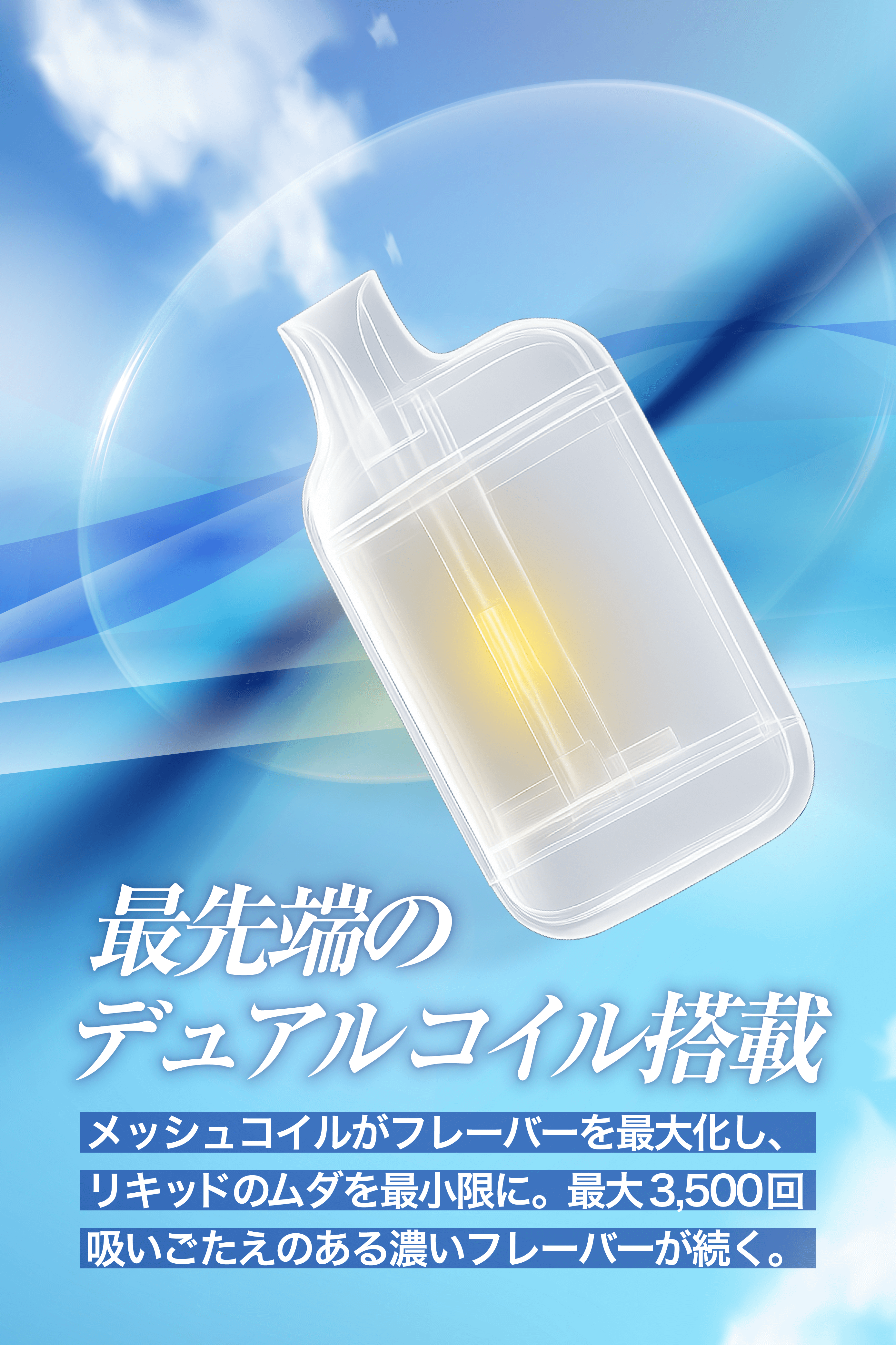パッケージ開封後、袋を開け、吸引口のキャップを外してください。そのまま吸引し、フレーバーをお楽しみいただけます。