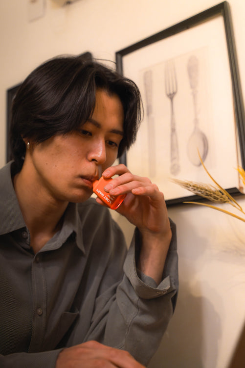 パッケージ開封後、袋を開け、吸引口のキャップを外してください。そのまま吸引し、フレーバーをお楽しみいただけます。